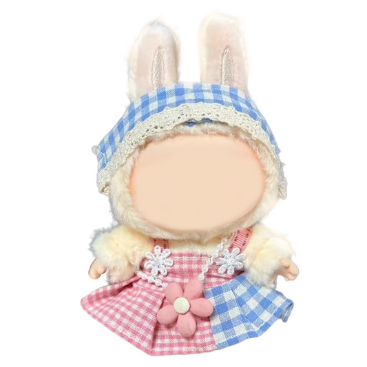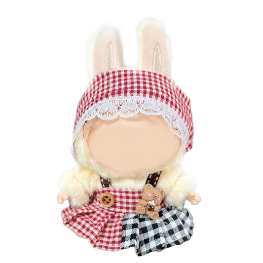 MCOIKY® Vinyl Face Plush Doll Clothes & Fresh Plaid Rabbit Ears Dress Set