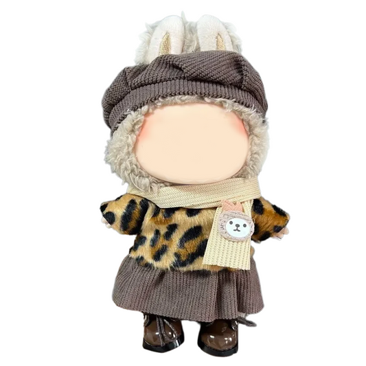 MCOIKY® Vinyl Face Plush Doll Clothes & Fashion Leopard Print Sweater Dress Set